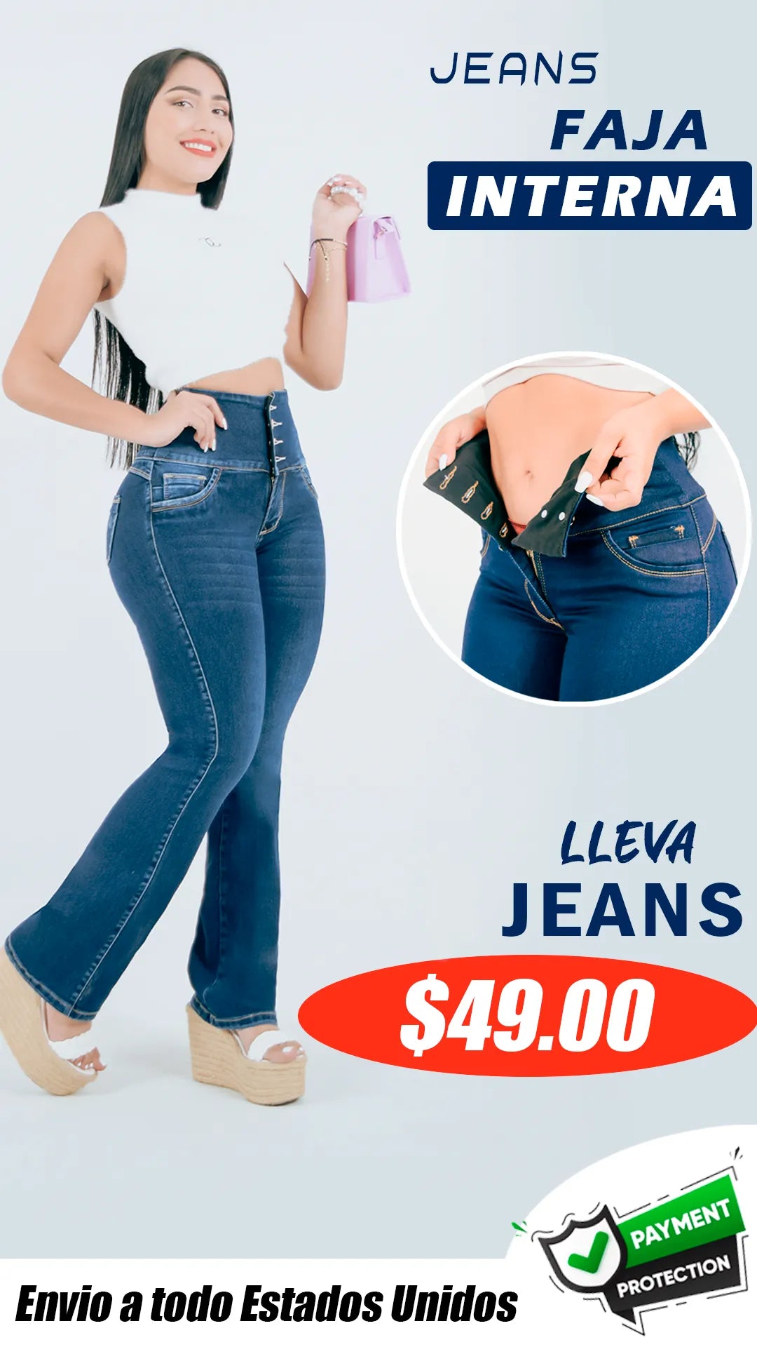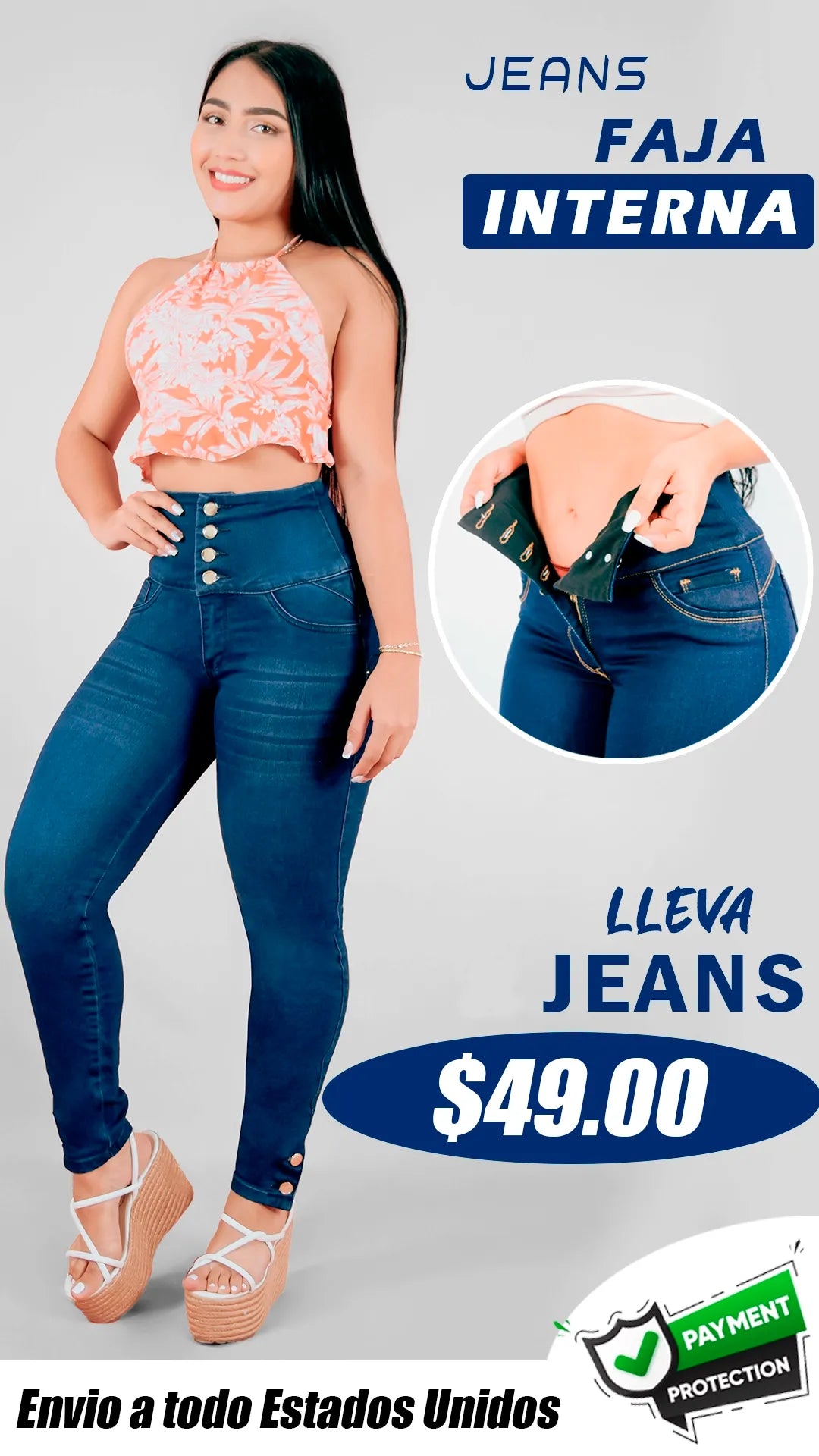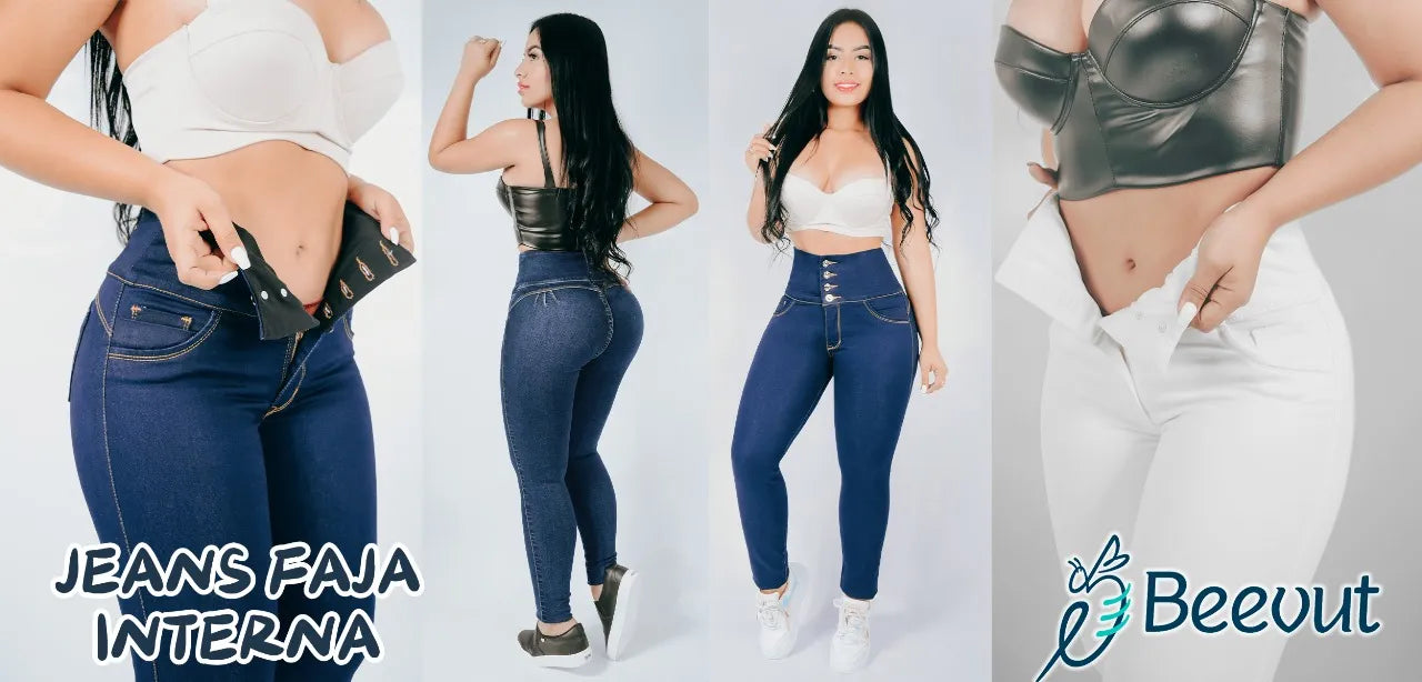 Jeans con Faja Control de Abdomen Levanta Cola Natural Premium Cintura de Avispa